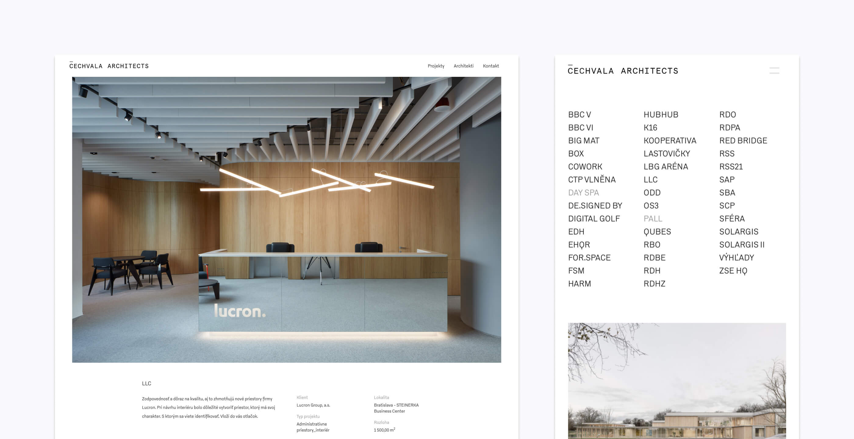 Architecture atelier founded and led by Tomáš Čechvala that designs timeless projects – from interiors to urbanist studies. Our identity and web follow their minimalist work approach. Original logo has been designed by Damian Pastircak.