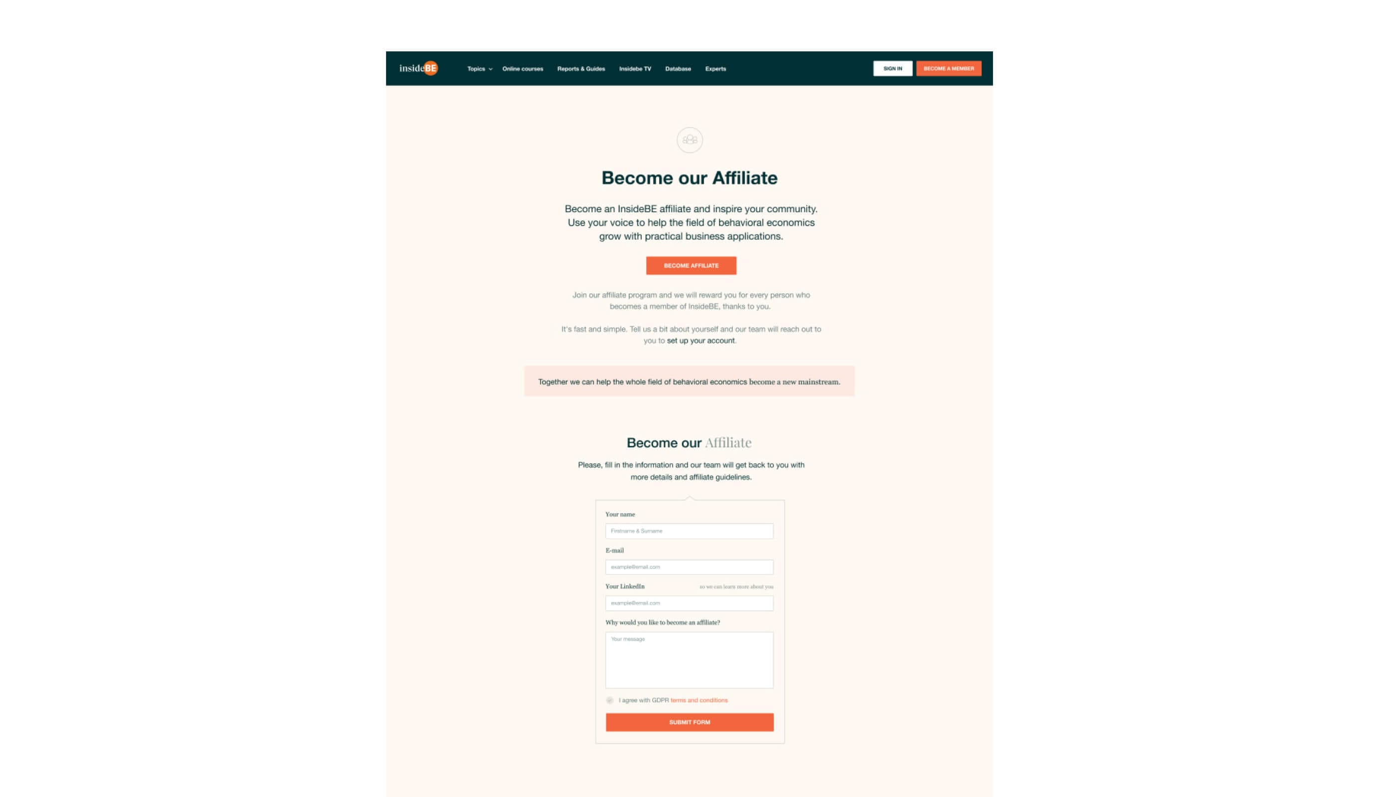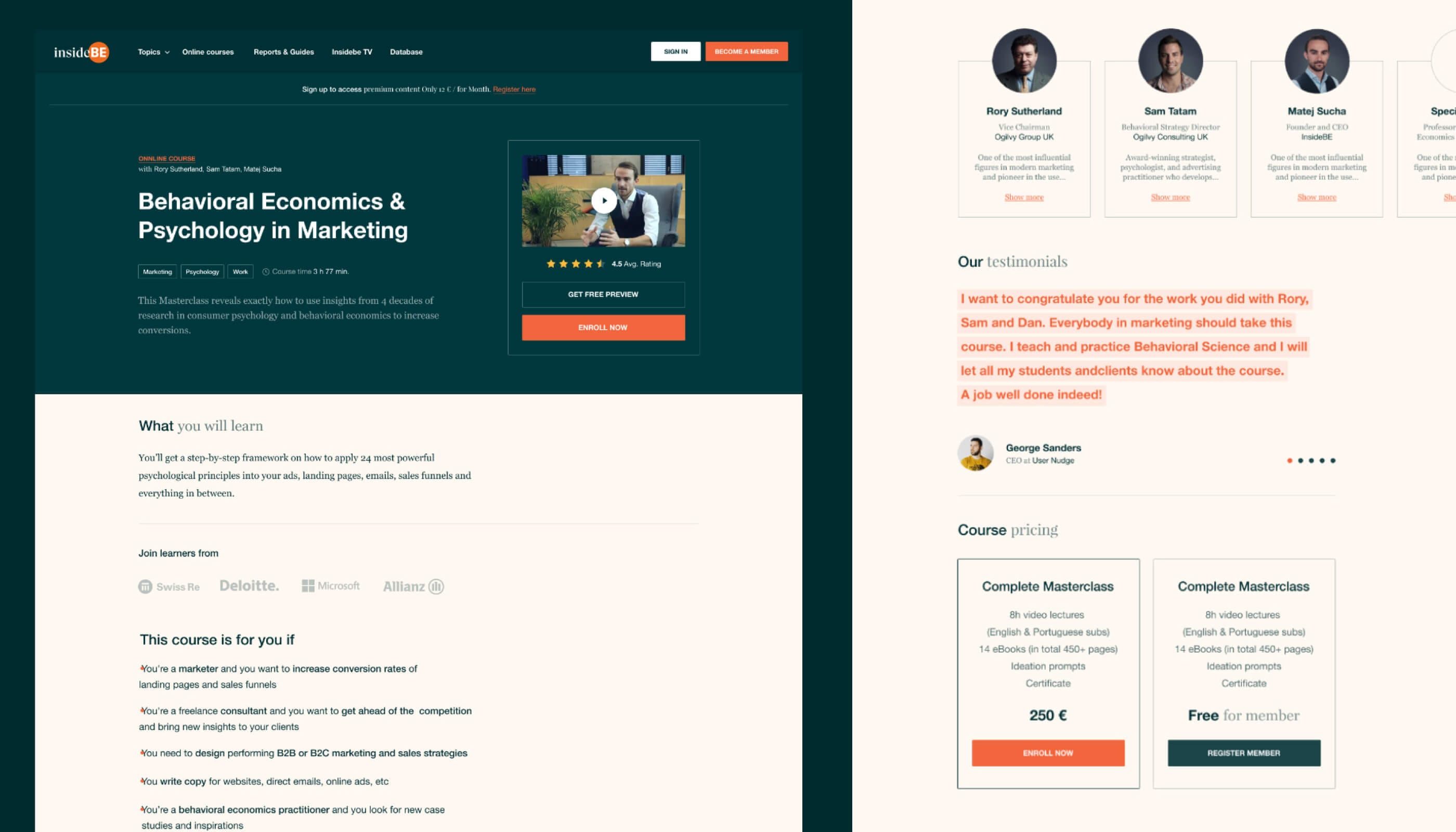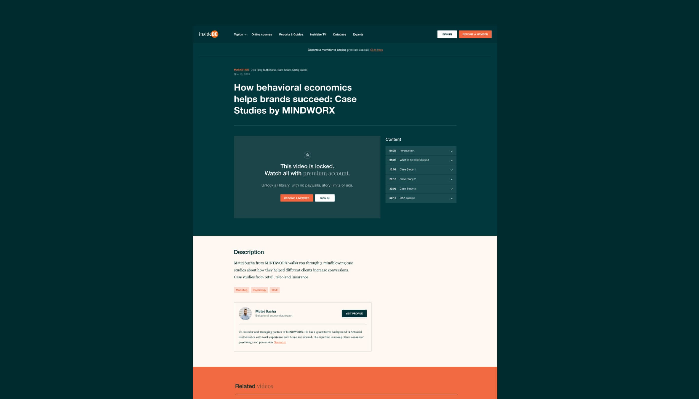 For the educational platform based around behavioral economics, we created the visual identity, information architecture, UX, web design, as well as developed its front-end, back-end, and content locking system.
